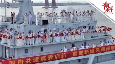 近日,南部战区举行集体婚礼的视频引发网友关注。11月12日,南部战区发布该视频。视频中,新人们都各自装扮好,准备迎接“集体婚礼”。海天为证,军舰为媒,在战友和亲人的见证下,新人们步入神圣的婚姻殿堂,许下相伴一生的誓言。据了解,此次婚礼共有38对新人,场面动人且壮观。