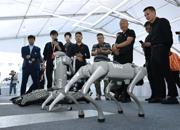 9月6日,在2023中国国际数字经济博览会上,工作人员向参观者介绍5G智慧工厂机器人。新华社记者 骆学峰 摄