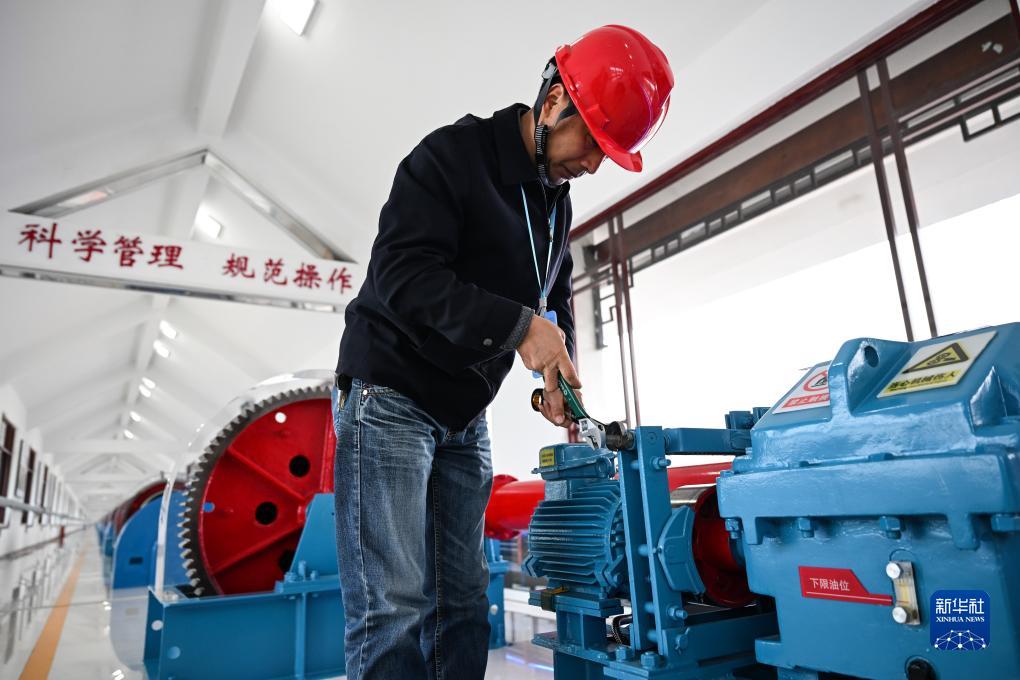 工作人员在三河闸检查启闭机(11月9日摄)。新华社记者 季春鹏 摄