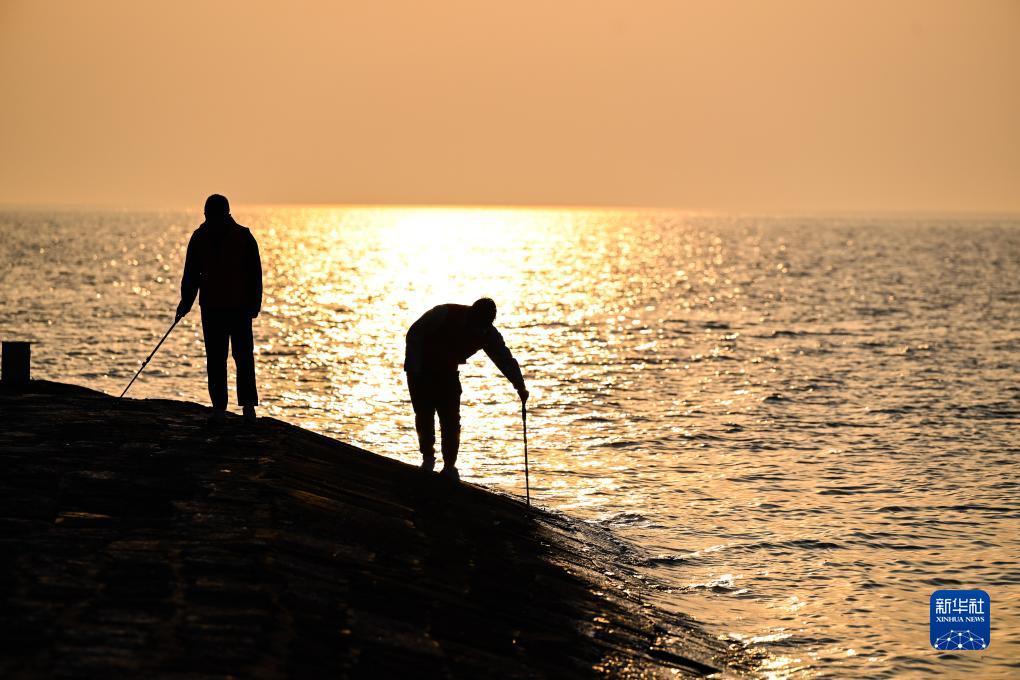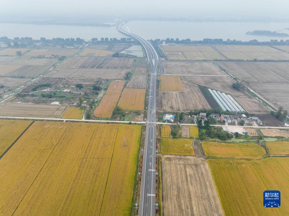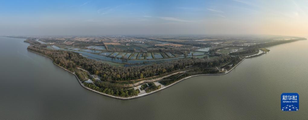 洪泽湖大堤初冬景色(11月8日摄,无人机照片)。新华社记者 季春鹏 摄