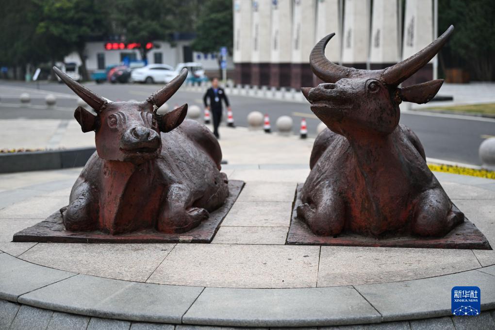 三河闸展示的清代镇水铁牛(11月9日摄)。新华社记者 季春鹏 摄