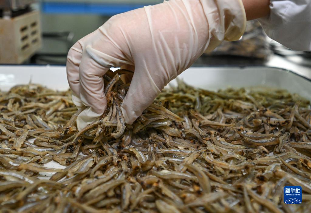 在湖南省岳阳市平江高新技术产业园,劲仔食品平江生产基地的化验员在实验室对进口鳀鱼进行水分检测(2023年6月28日摄)。今年6月,中国首次进口的肯尼亚野生鳀鱼产品在第三届中非经贸博览会上亮相。近年来,非洲对华农产品出口增长迅速,中国目前已经成为非洲农产品出口第二大目的地国。