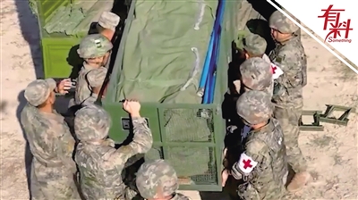 近日,东部战区组织官兵进行战场救护演练活动。在视频中,卫勤人员迅速出击、现场警戒,利用专业工具转移、救护、带离伤员。面对复杂战场环境以及各种突发险情,卫勤人员灵活处理,处变不惊。