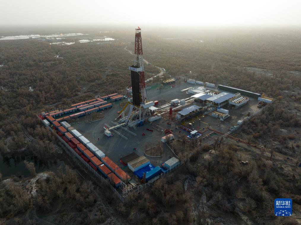 11月15日拍摄的中国石化“深地一号”跃进3-3XC井(无人机照片)。新华社记者 马嘉帅 摄