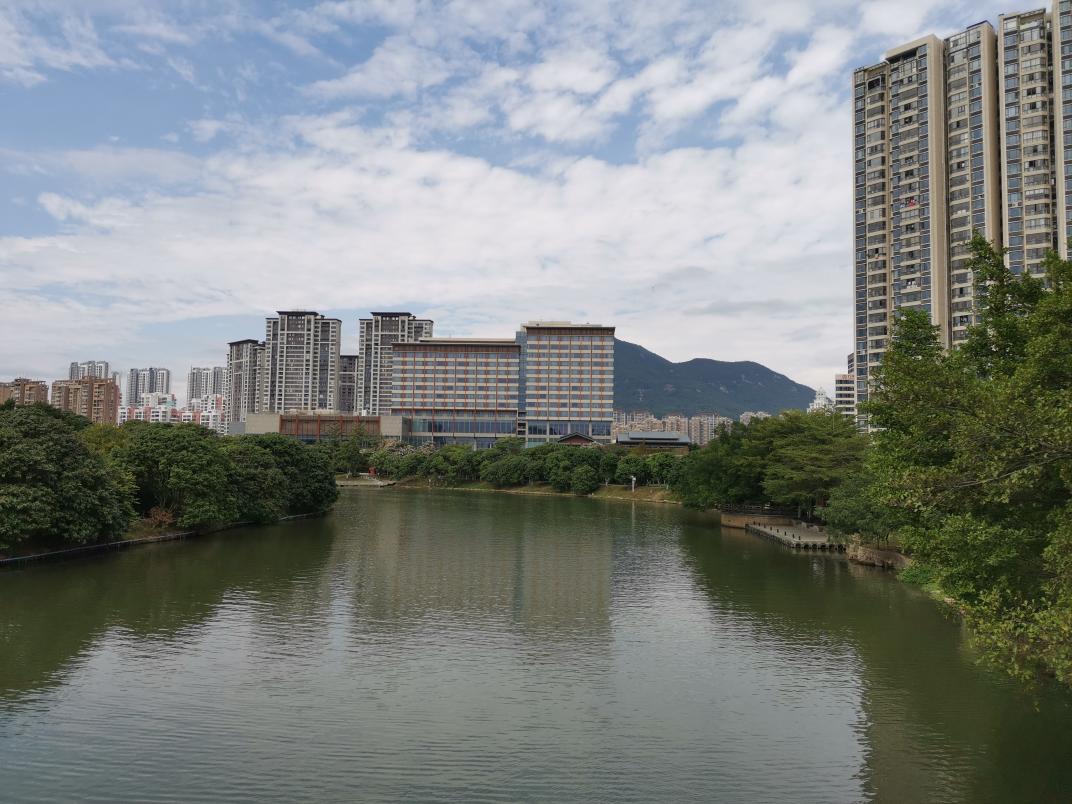 图为风景优美的木兰溪绿心公园