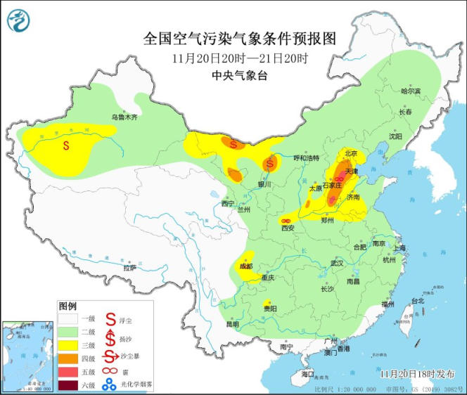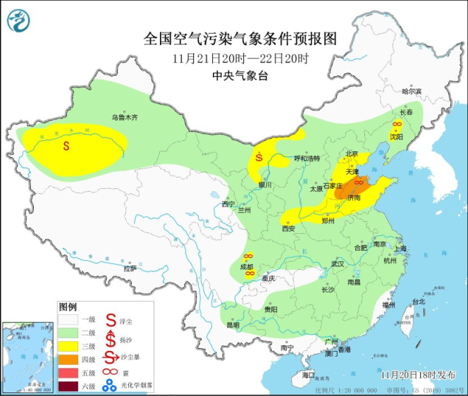 20日夜间到21日,山西南部、陕西关中等地的部分地区有轻度霾天气。