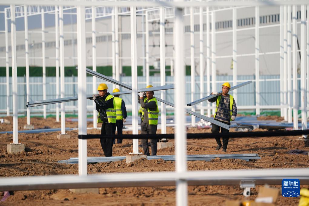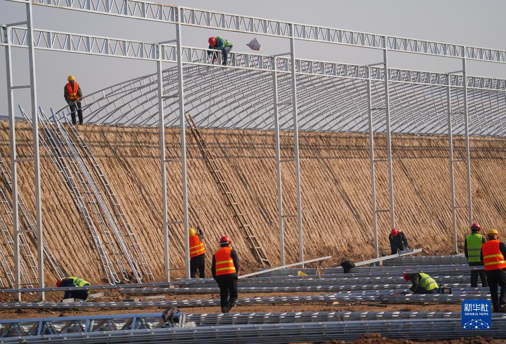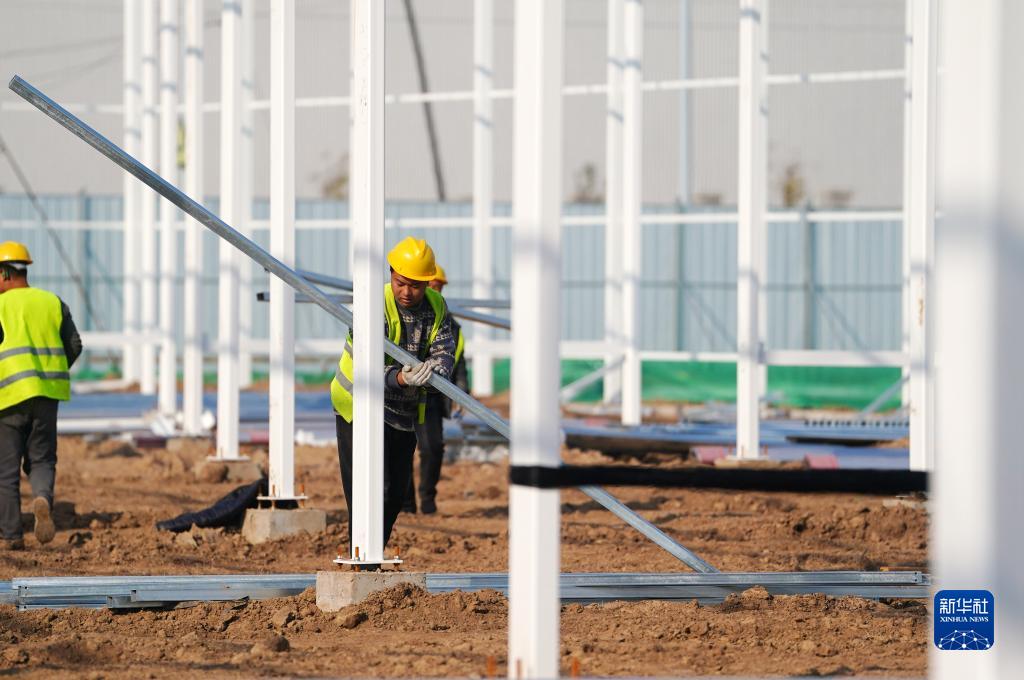 工人在进行饶阳县农村产业融合发展示范园项目施工(11月20日摄)。新华社记者 陈晔华 摄