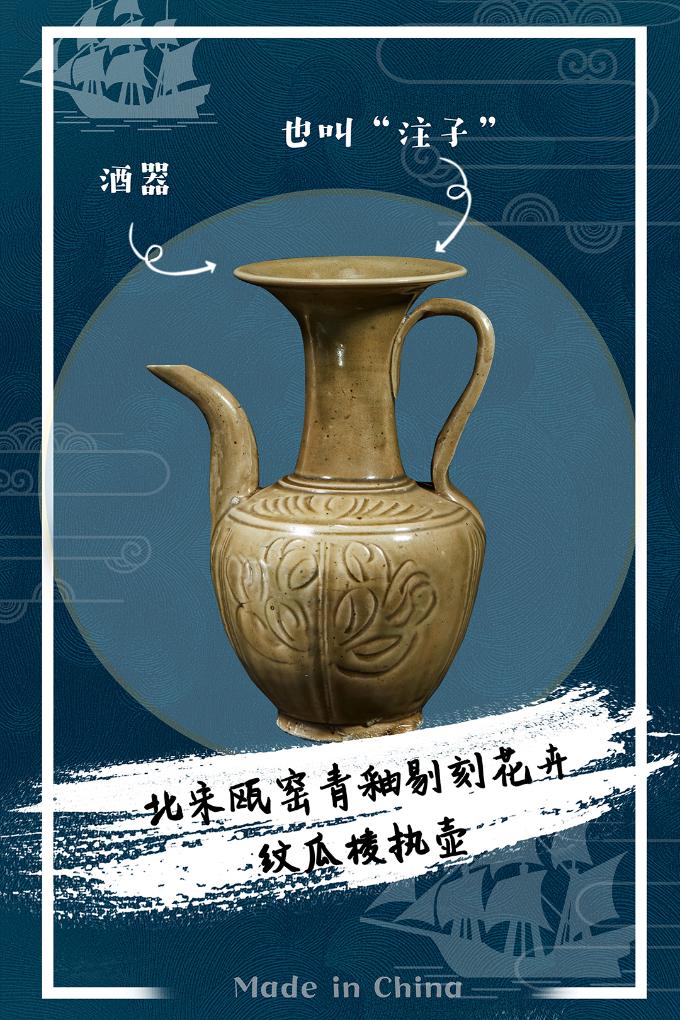 北宋瓯窑青釉剔刻花卉纹瓜棱执壶