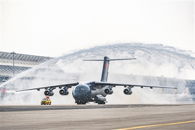 11月23日,在沈阳桃仙国际机场,运送志愿军烈士遗骸的空军专机通过水门。