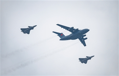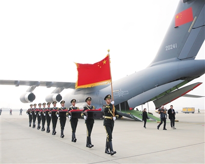 11月23日,空军两架歼-20飞机为运送烈士遗骸回国的运-20专机护航。
