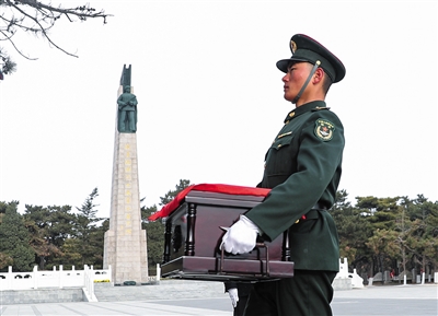 11月23日,志愿军烈士遗骸抵达沈阳抗美援朝烈士陵园。新华社记者 龙雷 摄