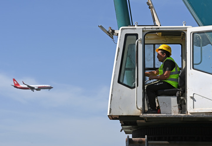 工作人员在空客天津第二条总装线项目开工现场准备施工。新华社记者 赵子硕 摄