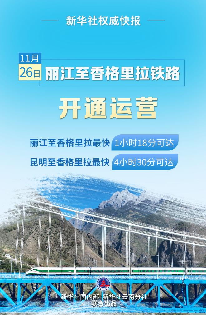 11月26日,丽江至香格里拉铁路(丽香铁路)建成通车