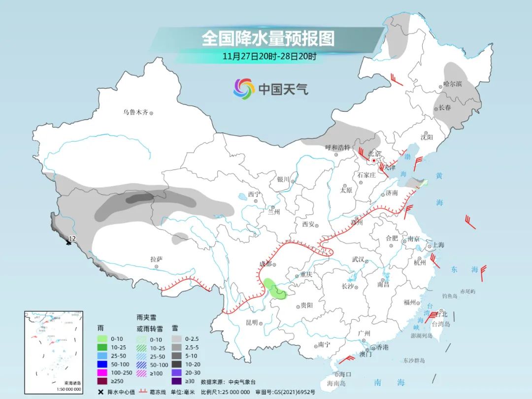 与此同时,青海、西藏一带也将有降雪发展增多。其中27日夜间至28日,受南支槽影响,西藏北部和西部、青海西部等地部分地区有中到大雪,局地暴雪。