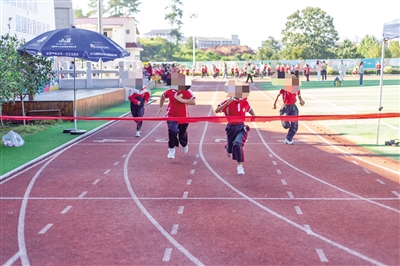 课间活动,一小学学生正在进行跑步比赛。