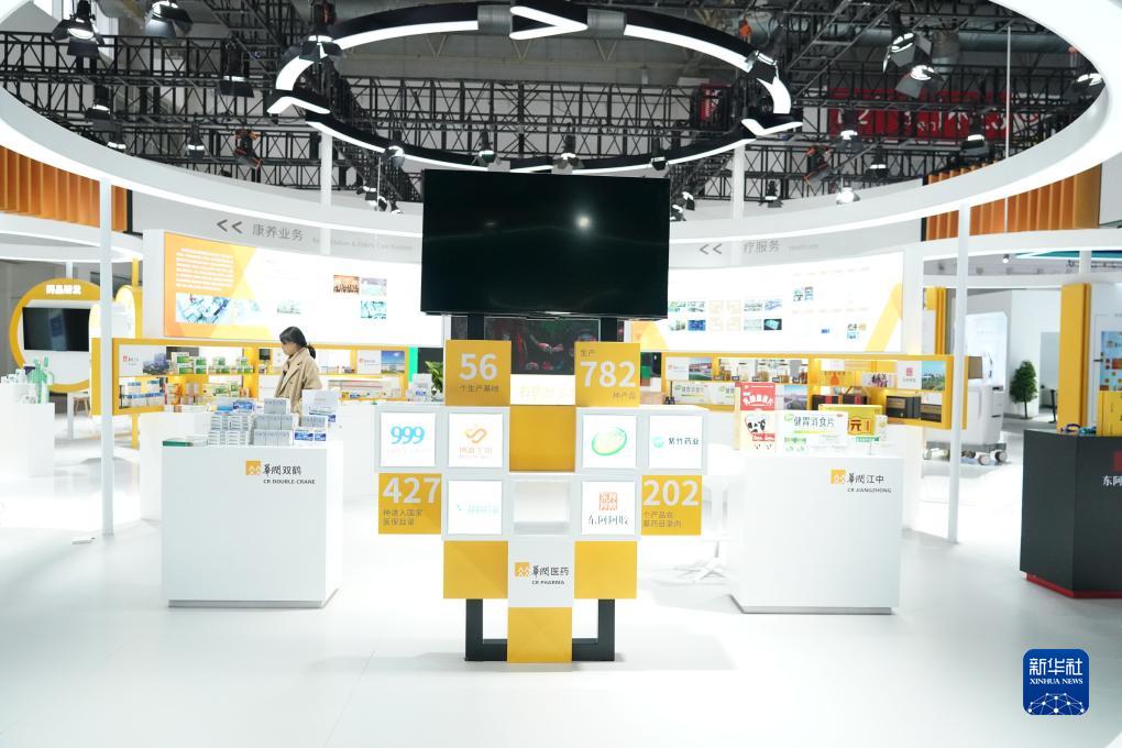 11月26日在中国国际供应链促进博览会健康生活链展区拍摄的华润展位。