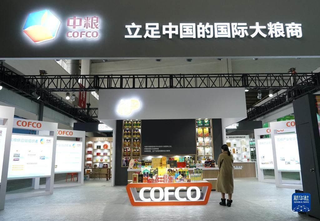 11月26日在中国国际供应链促进博览会绿色农业链展区拍摄的中粮集团展位。