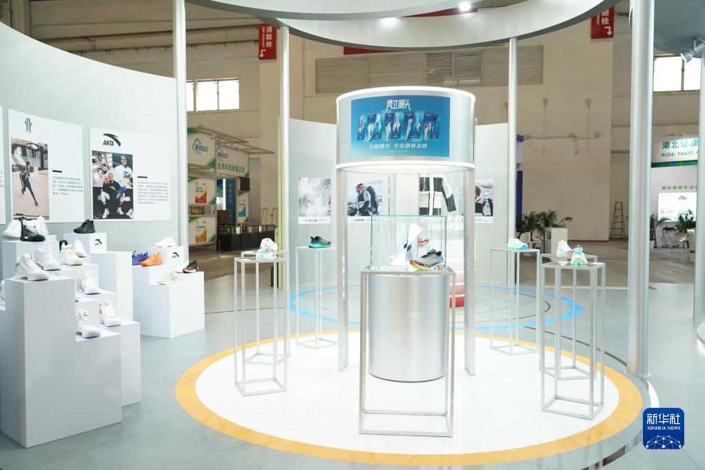 11月26日在中国国际供应链促进博览会健康生活链展区拍摄的安踏展位。