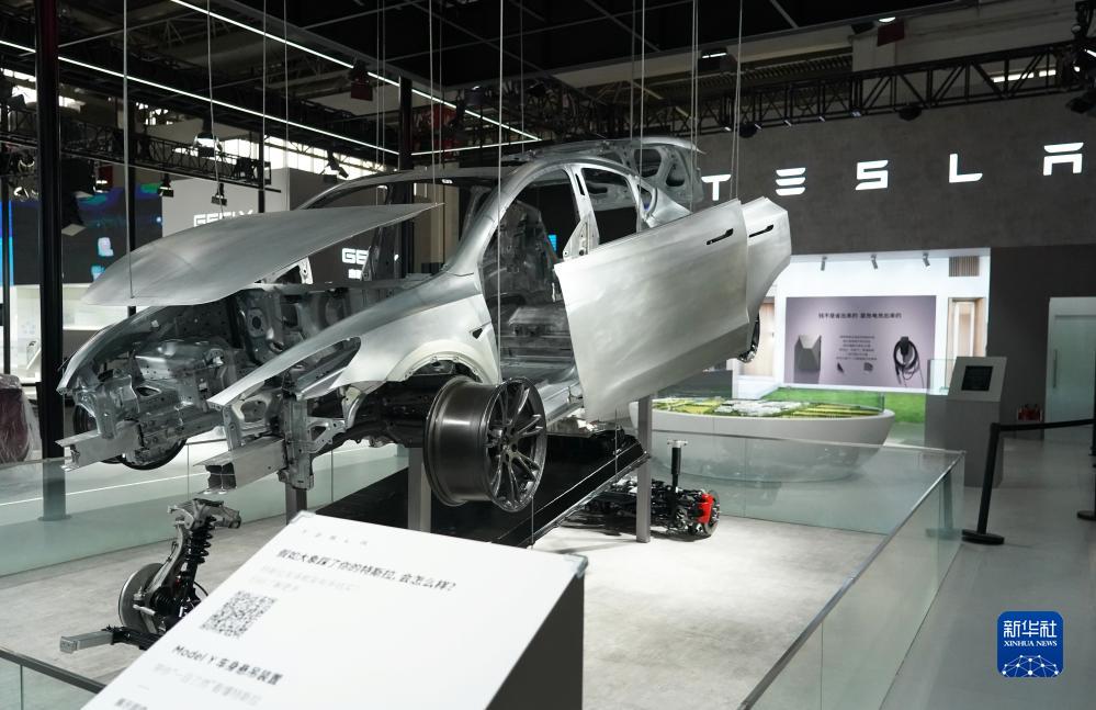 11月26日在中国国际供应链促进博览会智能汽车链展区拍摄的特斯拉展位。