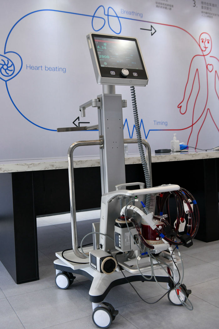 这是2023年1月6日拍摄的我国国产体外膜肺氧合治疗(ECMO)产品。 当日,我国国产体外膜肺氧合治疗(ECMO)产品获批上市颁证仪式在深圳国家高性能医疗器械创新中心举行。新华社记者 梁旭 摄