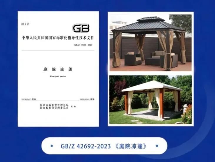 《庭院凉篷》国家标准化指导性技术文件自2023年12月1日起实施,该文件的制定和出台将填补该类产品缺乏标准规范的空白,有利于庭院凉篷产品质量的提升以及行业的发展,为企业出口提供保障。文件首次对庭院凉篷从产品分类、原材料、外观、产品完整性、尺寸、性能要求和安全要求等方面进行详细规范。