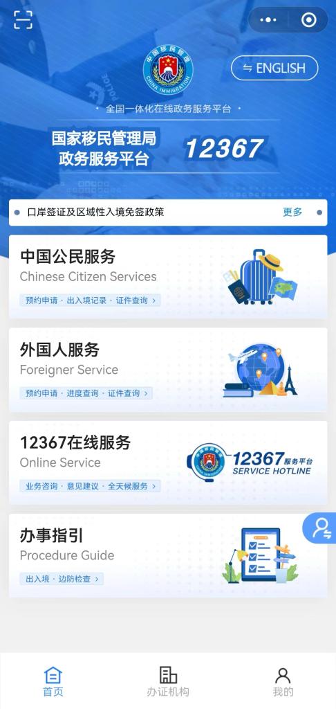 国家移民管理局政务服务平台改版升级,11月30日原APP客户端和微信、支付宝小程序端口“移民局NIA”更名为“移民局12367”,并开通12367服务平台在线应答服务,提供7×24小时、中英双语人工或智能实时响应,“即接即办、一办到底”,受理中外人员线上提出的移民管理领域业务咨询、问题解答、意见建议等诉求。