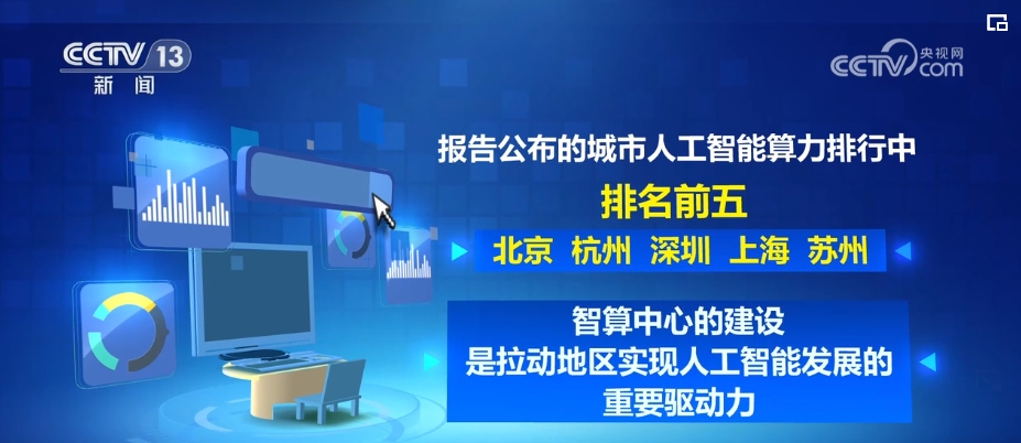 从地区分布看,《报告》公布的城市人工智能算力排行中,北京,杭州,深圳、上海、苏州排名前五,智算中心的建设是拉动地区实现人工智能发展的重要驱动力。