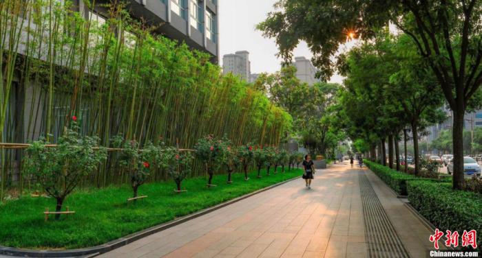 “休闲示范一条街”向阳西路。临汾市城市管理局供图