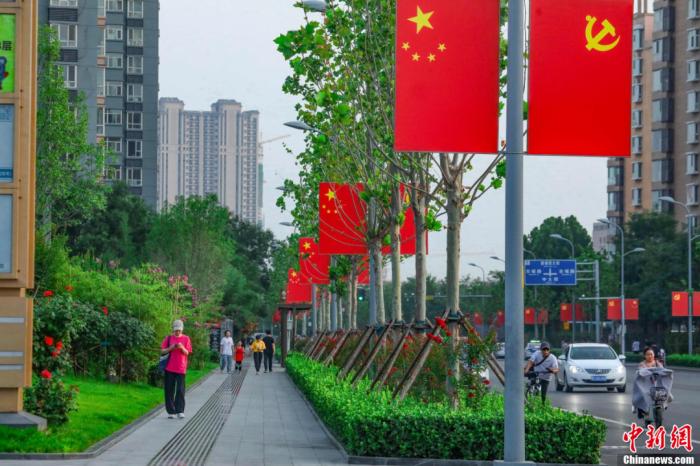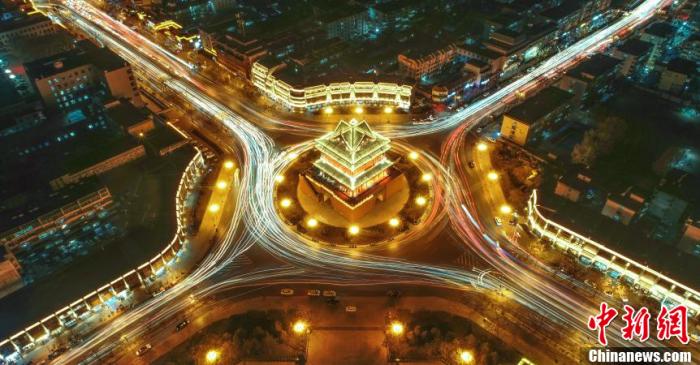 “商业示范一条街”财神楼南北街。临汾市城市管理局供图