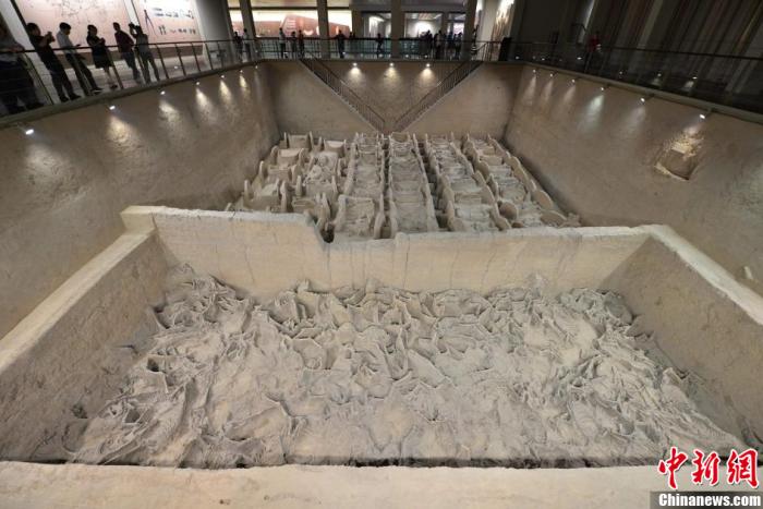 晋侯墓地遗址陈列展中有我国目前发现的西周时期随葬车辆最多、规模最大的车马坑。 晋国博物馆供图