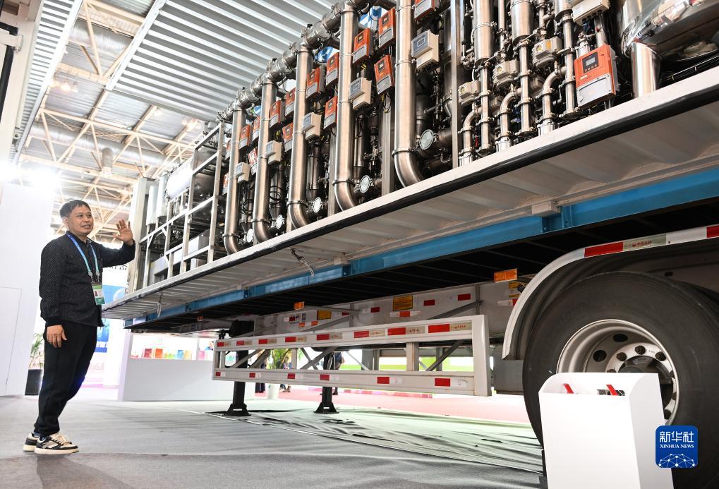 11月30日,在链博会绿色农业链展区,广州泽力医药科技有限公司工作人员介绍低温高效提取移动智能工厂相关功能。