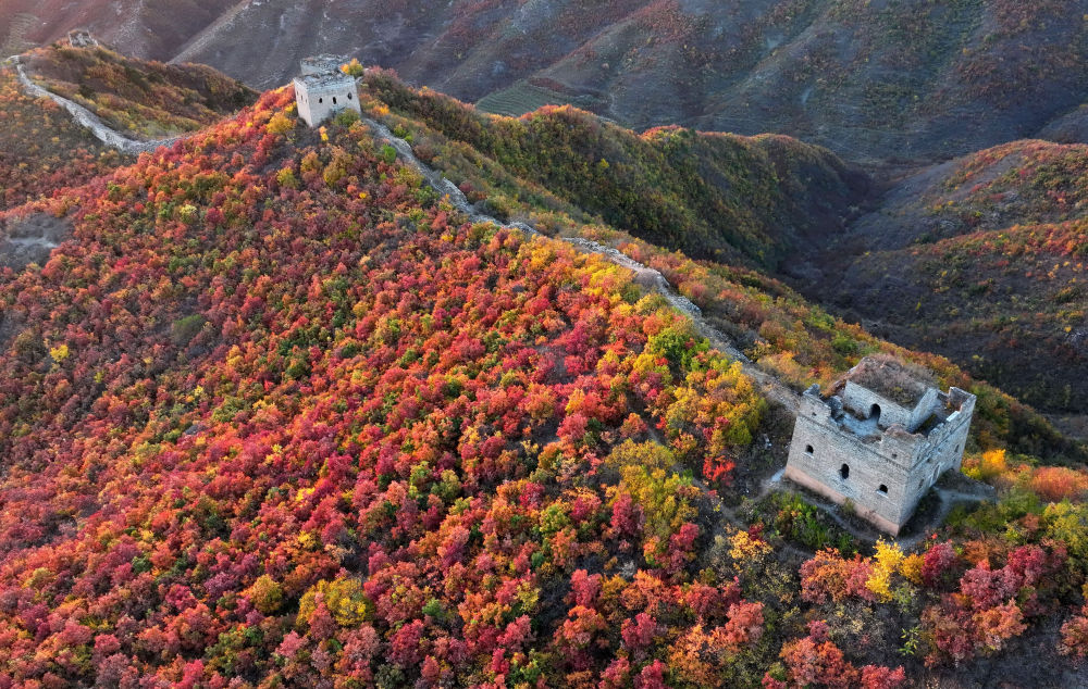 这是2023年10月26日在河北省秦皇岛市海港区境内拍摄的城子峪长城景色(无人机照片)。新华社记者 杨世尧 摄