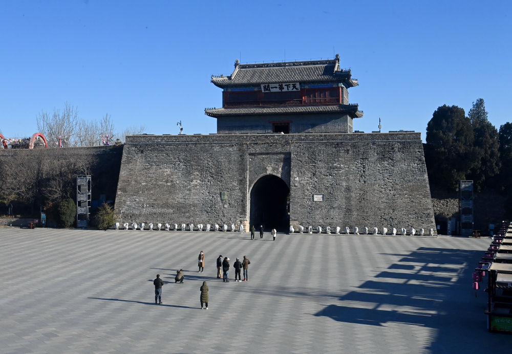 游客在河北省秦皇岛市山海关区天下第一关景区游览(2023年11月29日摄)。新华社记者 杨世尧 摄