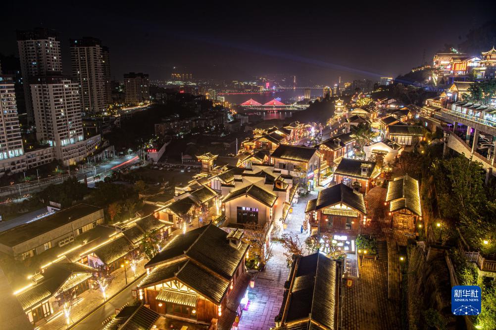 这是11月27日拍摄的重庆万州天生城文旅街区夜景。该街区是依托天生城大遗址公园,融合天生城遗址历史人文、渝东北特色民宿打造的集城市消费、旅游休闲于一体的文旅地标。