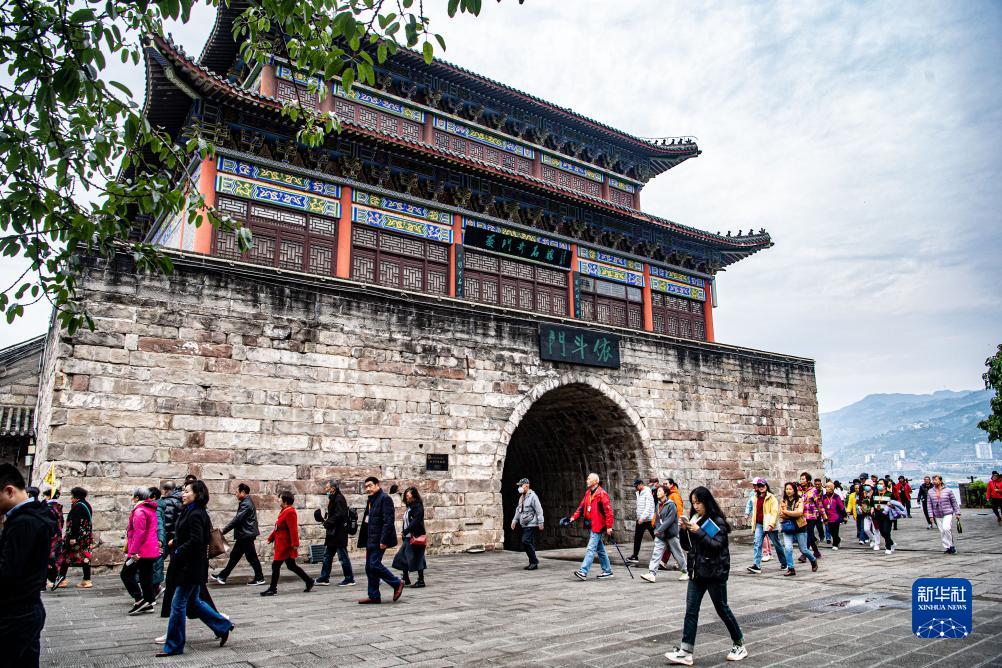 游客在重庆奉节县依斗门景区游览(11月29日摄)。近年来,奉节抓住长江国家文化公园建设的机遇,将历史文化资源发掘、活化起来,建设“诗香城市”,打造诗词文化品牌,千年“诗城”魅力彰显。