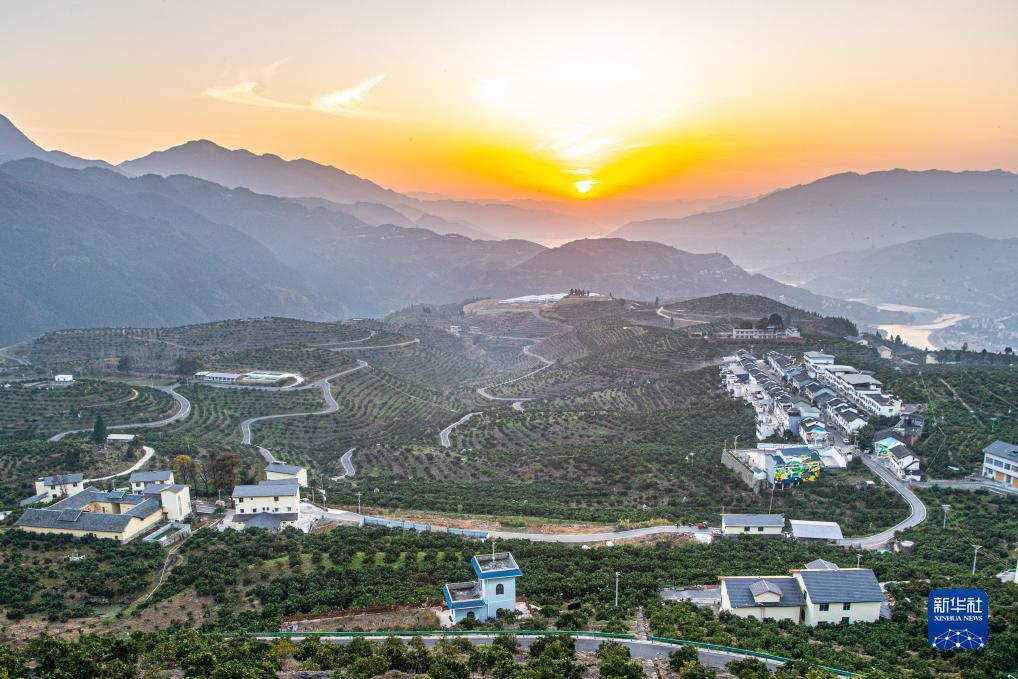 这是11月28日拍摄的重庆奉节县草堂镇欧营村脐橙观光园一景。近年来,该村依托良好的生态禀赋,大力发展特色脐橙产业,走上绿色转型发展之路。从2015年到2022年,村民人均可支配收入由近9000元增加到17850元。目前,欧营村脐橙种植面积扩大至7580余亩,正加强智慧农业系统布局,打造脐橙标准化、机械化、生态化、智能化种植示范片。