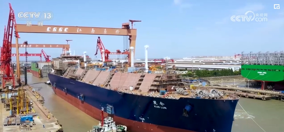 岛上的沪东中华造船厂主营的就是LNG运输船。一艘LNG船由上百万个零部件组成,在过去,它的配套设施设备都得从国外进口,一个零部件损坏就需要等几个星期才能收到补货,但是现在情况变了。