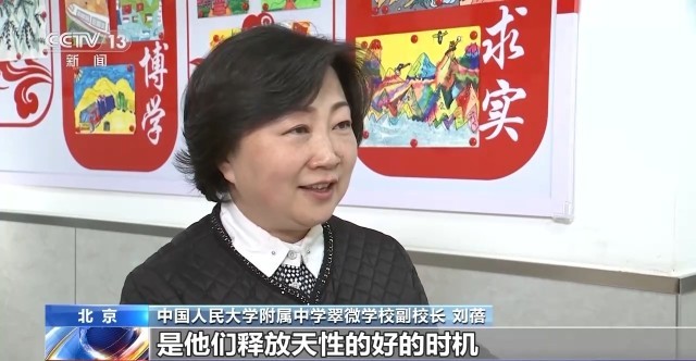 中国人民大学附属中学翠微学校副校长 刘蓓:课间对孩子来讲是他们释放天性的好的时机,我们学校虽然校园很小,确实也受到楼层的限制,但是在学校里我们是尽可能多的开放活动空间,把这些给孩子们。