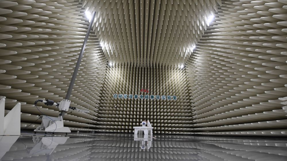 在国家电网公司直属产业单位南瑞集团有限公司自动化设备电磁兼容实验室,科研人员在进行辐射发射实验准备工作(2023年7月7日摄)。新华社记者 季春鹏 摄