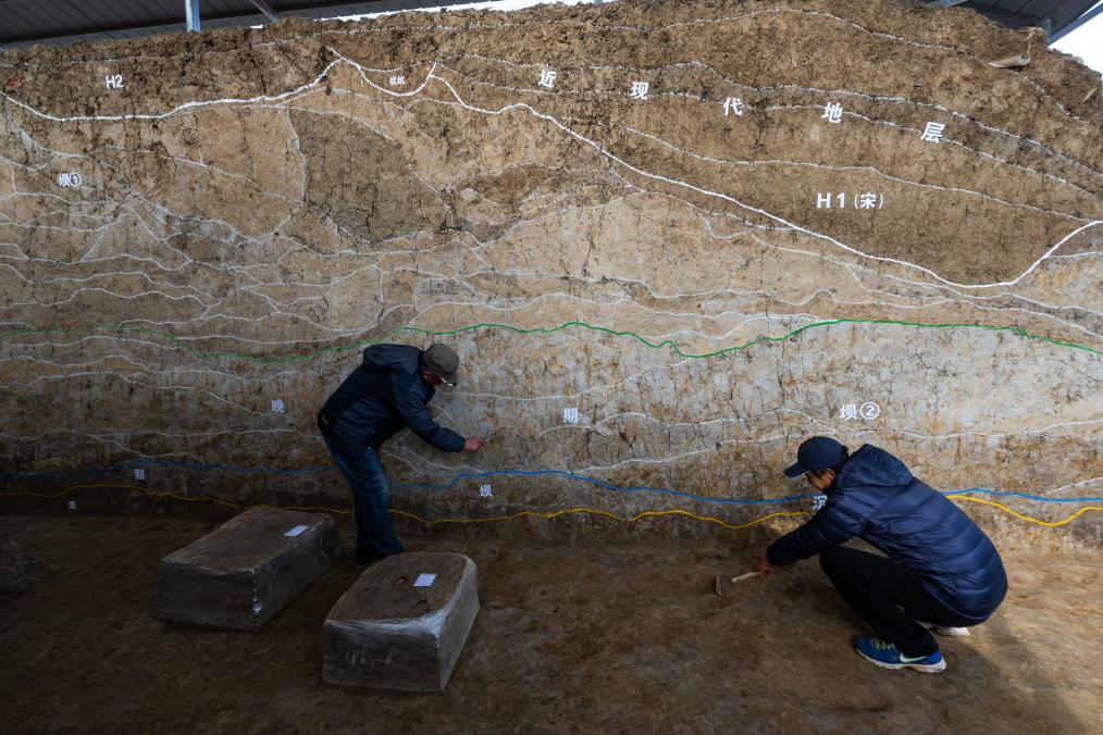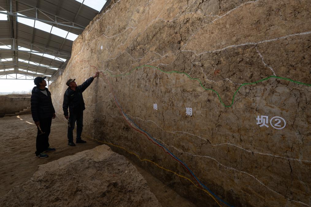 ↑12月4日,考古人员在熊家岭水坝遗址现场进行考古工作。新华社记者肖艺九摄