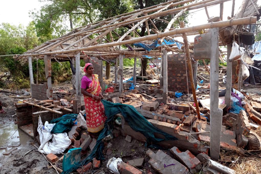2021年5月29日,印度西孟加拉邦的一名女子站在被热带气旋“亚斯”毁坏的房屋废墟上。新华社发