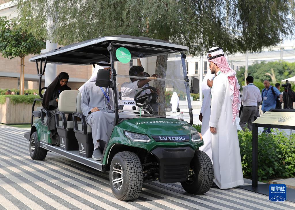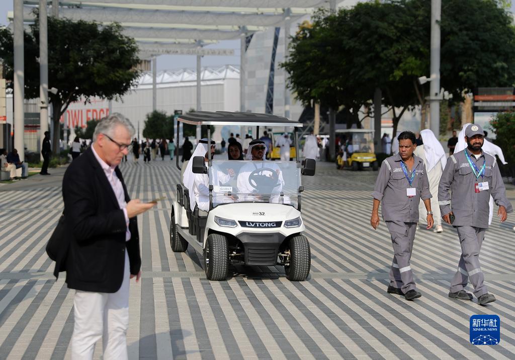 12月4日,工作人员驾驶来自广东绿通的电瓶车行驶在联合国气候变化迪拜大会“绿区”。新华社记者 王东震 摄