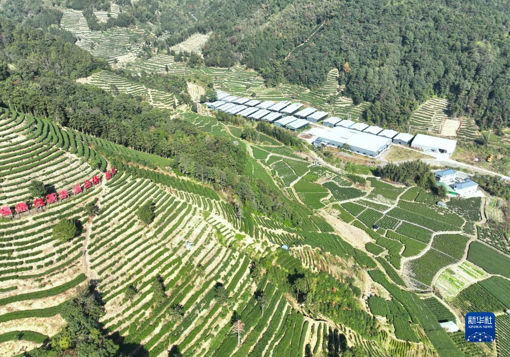 12月8日在赤溪村拍摄的茶山和菌菇大棚(无人机照片)。