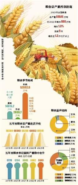 原标题:2023年全国粮食总产量13908.2亿斤,自2004年起连续迎来第20个丰收年
