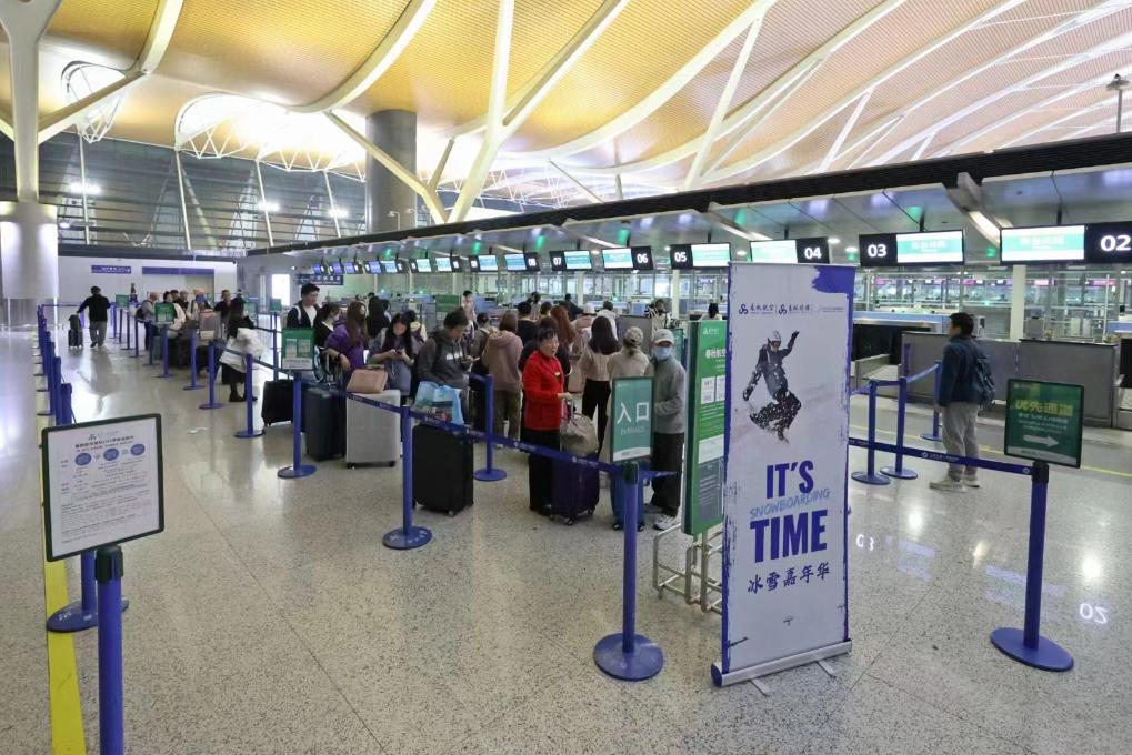 11月23日,一批游客从上海出发前往长白山参加“冰雪嘉年华”。新华社记者陈爱平 摄