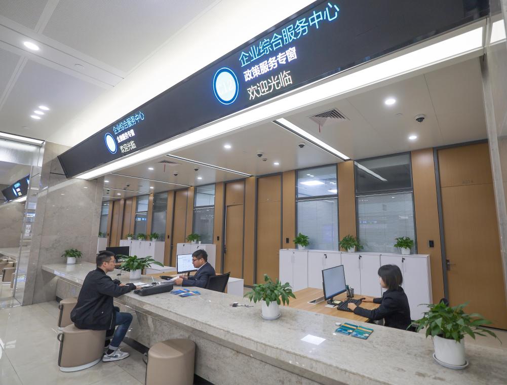 2023年11月24日,企业主在浙江省杭州市临安区企业综合服务中心的金融服务专窗办理业务。 新华社记者 徐昱 摄