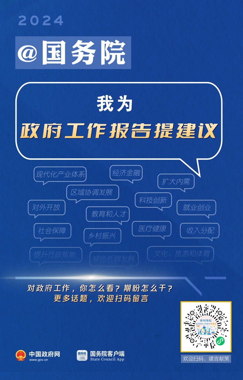 点击链接查看→建言征集,直通《政府工作报告》!