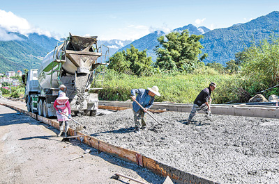 10月13日,工人们在墨脱县修筑乡村公路。新华社记者 孙 非摄