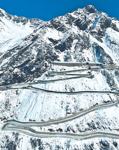 雪后的波墨公路沿嘎隆拉山蜿蜒。马春林摄(人民视觉)
