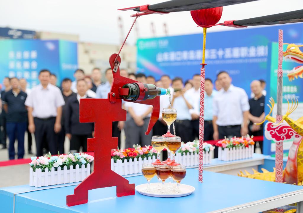 叉车司机精确地将啤酒倒入酒杯(9月21日摄)。